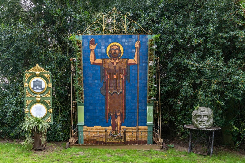Ook buiten op hun erf rond de boerderij hebben Marcel en Angèle hun passie voortgezet. Of eigenlijk kun je beter zeggen: ook buiten op hun erf rond de boerderij is de passie van beiden als het ware organisch verder gegroeid. Onderdeel daarvan is onder meer een theetuin met een ‘tuinsieraad’. Dat laatste bestond aanvankelijk uit een gietijzeren constructie van oorspronkelijk 9 meter hoog, dat (uiteindelijk) begroeid moest worden met allerlei klimplanten. Van Riel kreeg weliswaar een Omgevingsvergunning voor dit tuinsieraad, maar gelijktijdig ook de opdracht van de gemeente om de ijzeren constructie in hoogte terug te brengen tot maximaal 3 meter, omdat de hoogte van 9 meter in strijd was met het Bestemmingsplan dat ter plaatste geldt. Zou hij dat niet doen, dan zou hij een eerder opgelegde last onder bestuursdwang overtreden, die de gemeente de bevoegdheid geeft dat bouwwerk, op zijn kosten, te slopen. De ijzeren constructie werd daarom teruggebracht tot de gewenste 3 meter.